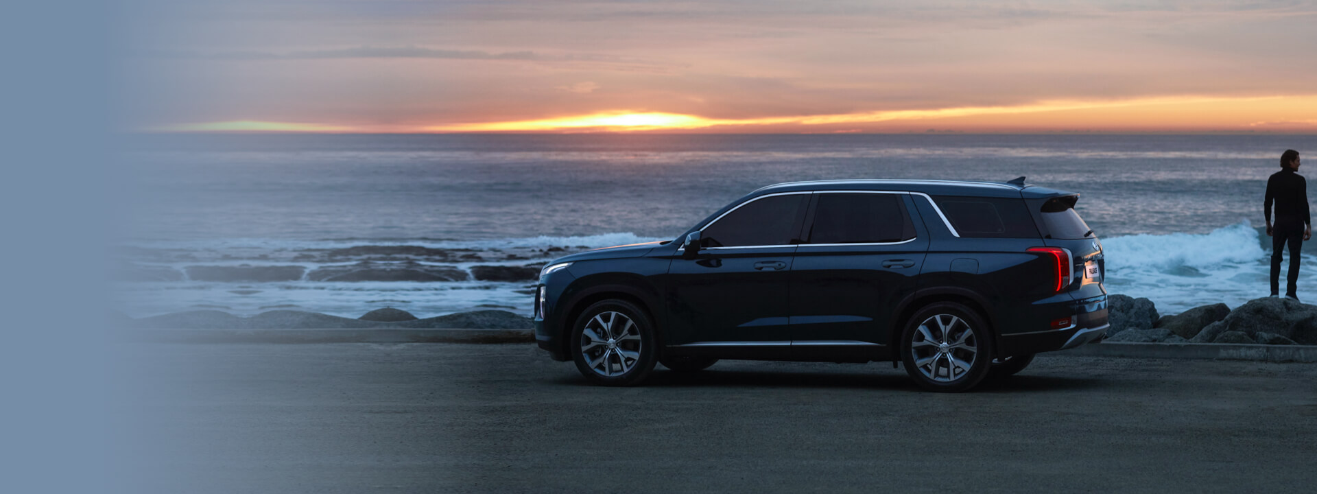 The ideal proportions for a growing family, the Palisade’s profile is defined by a powerful and long hood design, unique front and rear lights connected by flowing character lines, generous wheel arch volume, and a bold C-pillar design that concludes with flowing surrounds of high-ceilinged panoramic glass.